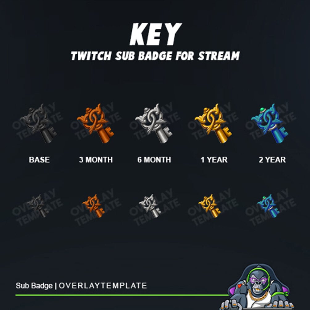 Presenting our new sub badges collections featuring an elegant and unique Key design and has five different colors in each tier. This set of charming sub badges design represents dominant, protection, and creative streamers. Make your loyal viewer feel special with this exclusive sub badges design.