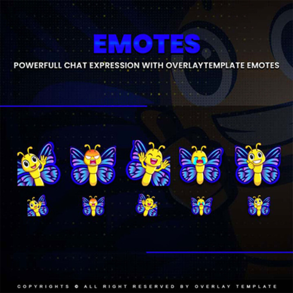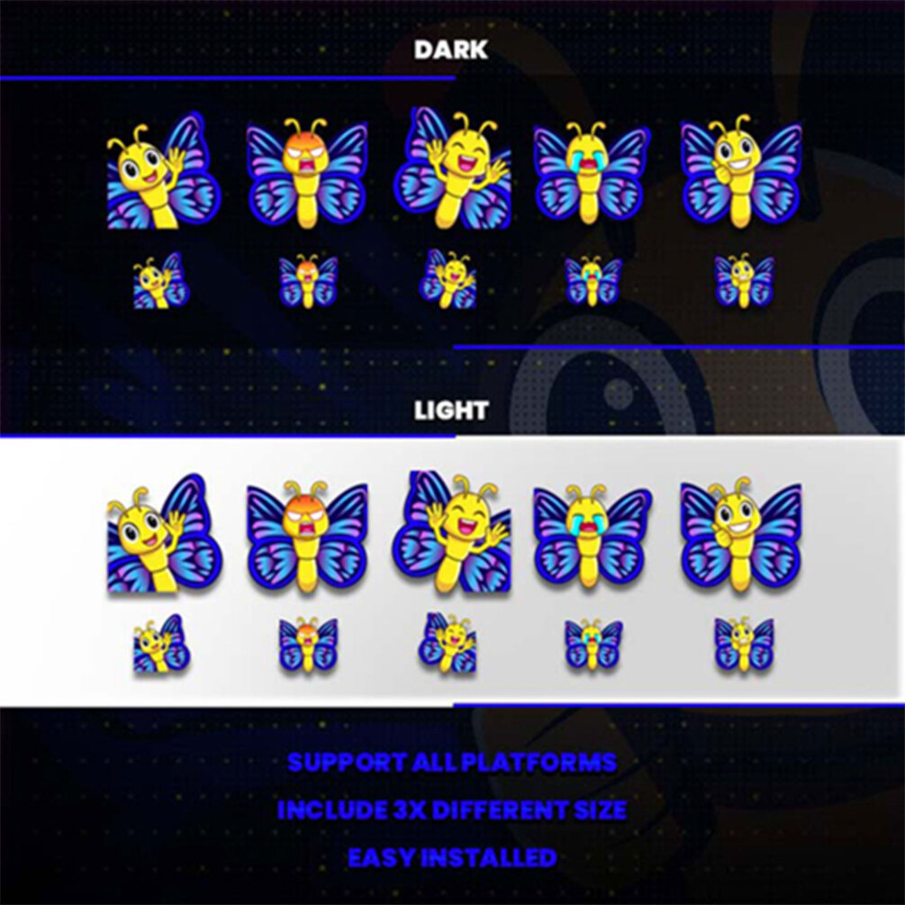 Introducing our thousand of emote designs to complete your Stream Chanel. This BUTTERFLY EMOTE is very SWEET and CHEERFUL characters. Make your viewer amaze with your emote design. Just select the best emotes design that you need to make a spectacular stream.