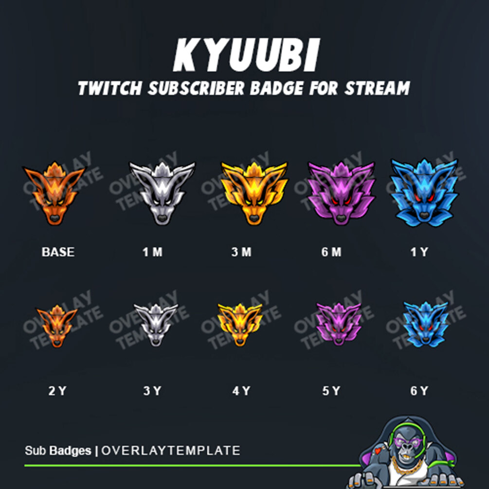 Introducing Kyuubi, the new design of our sub badges, it represents a fox spirit inspired by Chinese Mythology. This sub badges has a different design as a tier increase. This stunning Kyuubi badges into evolves several designs and colors. The dark color on the mask also adds a vibe of a cruel and coldblooded fighter.