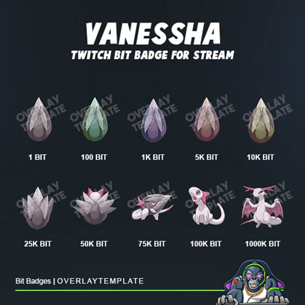 “Vanessha”, an Elegant dinosaur bit badges design. These evolving dinosaur bit badges come from the unique egg design grown up a gorgeous adult dinosaur. It is designed for streamers who have lovable and attractive characters.