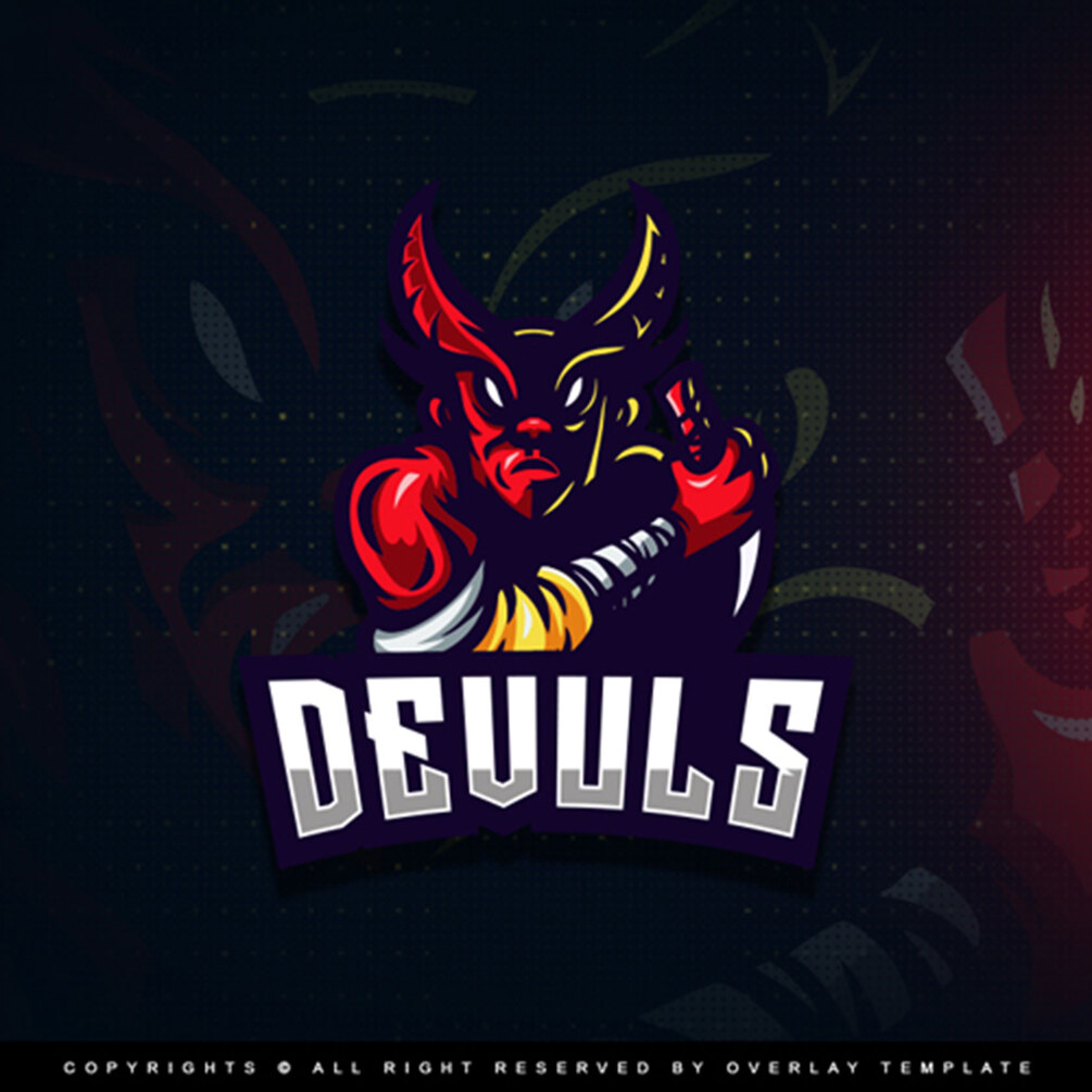 Introducing the DEVULS Mascot Logo is an esport logo FEATURING a bloody red monster character with 2 horns, anger face and holding a deadly blade. This brave but creepy character is perfect for you who are an intimidating, evil, cruel and fearless character.