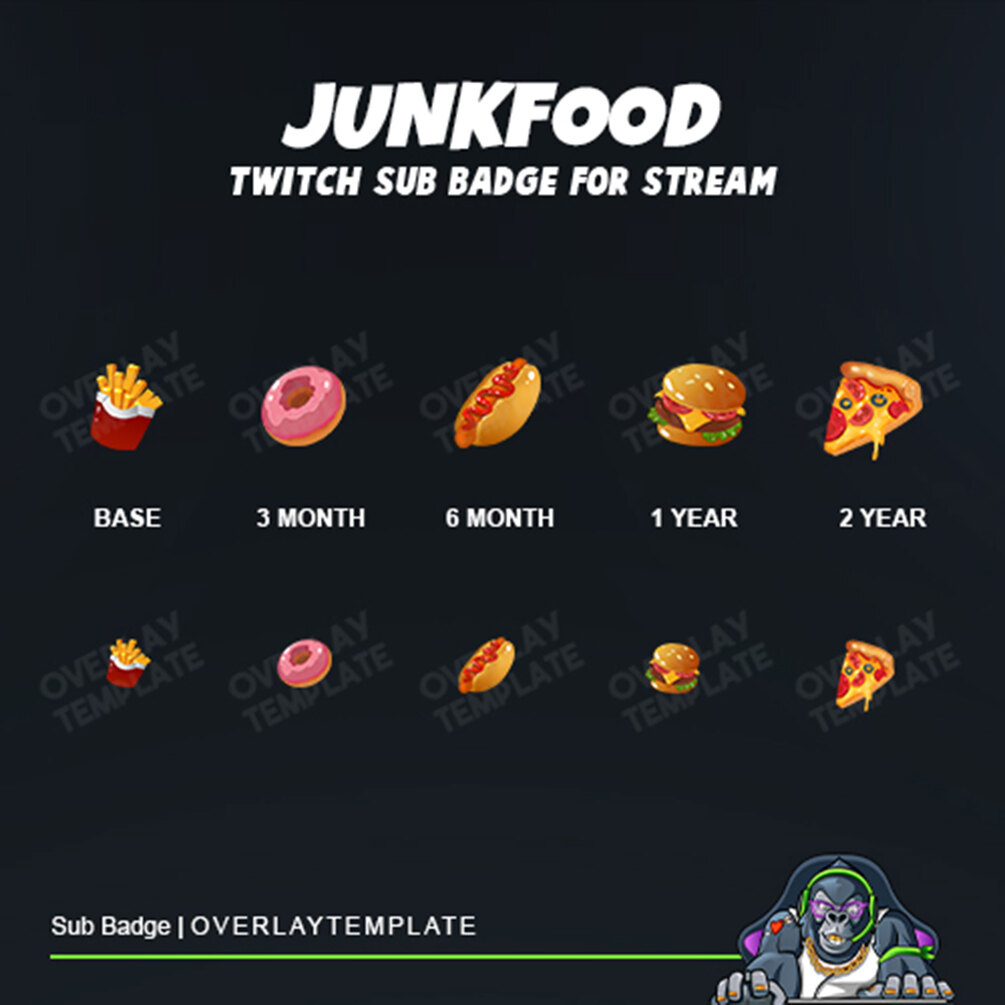 Let’s eat. Presenting Junkfood, a new set sub badges design. These sub badges is featuring delicious American favorite meals. It is designed for foodies and party lovers. This bundle of badges is perfect to add warmth and friendliness to your stream channel.