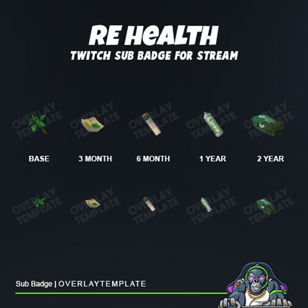 Get Well Soon. Introducing Re Health, the exclusive design of our sub badges. This set of badges features several items that are important for medical purposes. These badges come in various unique elements as tier enhance, such as herbal medicines and first aid. Share your humanity and caretaker with your loyal viewers.