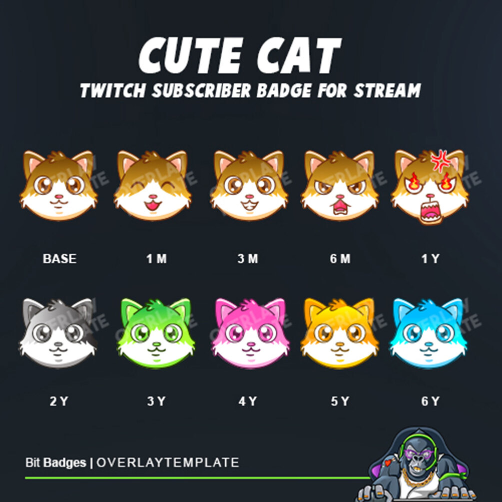 Presenting the design of our cute bit badge design, it is featuring CAT character. This collection of colorful cat design with various expressions will make your loyal viewers feel happy. It is created for cat lovers and amusing streamers.